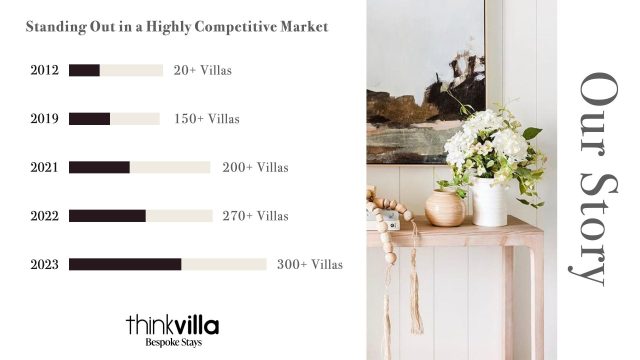 At ThinkVilla, each vacation rental property is meticulously assessed and individually evaluated against our stringent quality standards and exceptional service benchmarks. Our esteemed partnerships with Homes & Villas by Marriott International, Premier Partners at HomeAway, and Super Hosts on Airbnb empower us to consistently enhance and expand our occupancy and portfolio year after year.