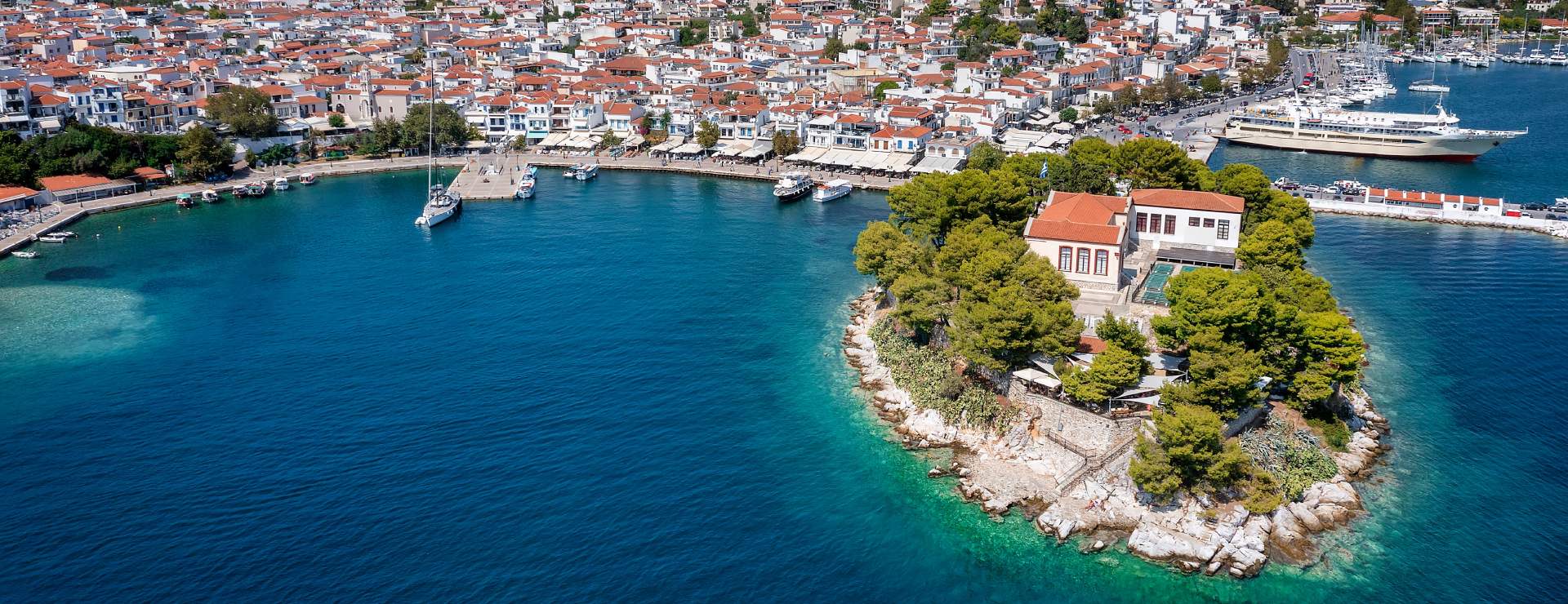 The emerald-green sparkle in the Sporades, a chic crowd, first-rate beaches and a rich history bring an irresistible glow to the lush green island of Skiathos, one of the sparkling gems of the Sporades islands.