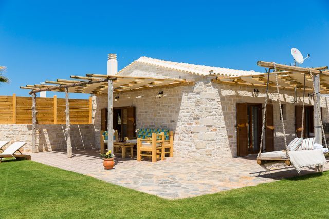 Nestled in the serene village of Prinos, Chainteris Villa II presents an ideal retreat, offering a perfect blend of comfort and natural beauty. Surrounded by a lush landscape of olive groves and captivating views of the Cretan Sea, this thoughtfully designed single-story villa ensures an exceptional stay. Each room provides direct access to a private garden and pool, enhancing your experience of peace and relaxation. Discover the ultimate in tranquil luxury at Chainteris Villa ΙI, where every detail is crafted for your utmost enjoyment. The villa boasts a stunning outdoor area featuring a 20m² private swimming pool (1,40m depth, non-heated), a shaded dining space with charcoal BBQ facilities, and a sun-kissed lounging area, perfect for relaxation and outdoor dining. For young guests, a delightful playground featuring a trampoline, playhouse, and a variety of outdoor toys brings an extra touch of charm and enjoyment to this peaceful retreat. Inside, traditional wooden accents seamlessly blend with modern amenities, creating a warm and inviting atmosphere that exudes comfort and style. Conveniently located just 10 minutes by car from sandy beaches, charming tavernas, and the vibrant town of Rethymno, the villa provides the perfect balance of seclusion and easy access to Crete's rich attractions.
