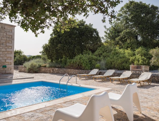 The interiors of Chainteris Villa II exude traditional charm and cozy elegance, enhanced by warm wooden accents and thoughtful design. This tranquil, ground-floor villa offers 70m² of inviting living space, blending rustic details with modern comforts. The open-plan living area features a welcoming fireplace, comfortable sofas, and a 32” flat-screen TV, creating a perfect space to relax after a day in the sun. A small foosball table adds an extra touch of fun and entertainment for guests of all ages. The fully equipped kitchen, complete with a dining table, offers everything needed for delightful shared meals. Accommodating up to 5 guests, the villa features two serene bedrooms—both with direct access to the pool terrace—and a bathroom with a bathtub. One additional guest can be comfortably accommodated on the living room sofa bed. Ideal for families or couples, this retreat offers both comfort and privacy for a truly memorable stay.