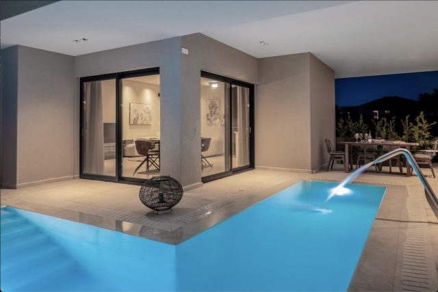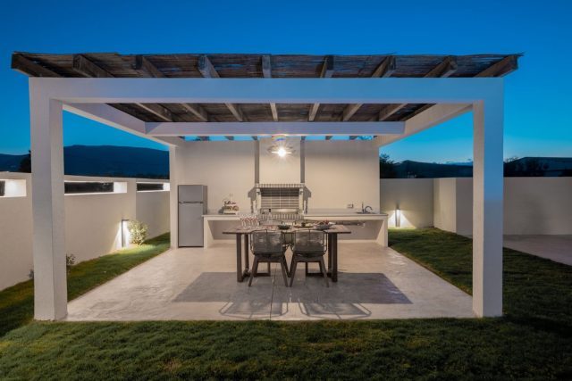 High quality bath towels and pool towels are available • Bathroom amenities are available • Air-conditioning in all areas is included & serves for heating purposes also • Wi-Fi coverage is available throughout the villa • Outdoor BBQ (charcoal) • Outside dining area & Bar • Indoor area 50m2 • Outdoor area 100m2 • Private Heated Pool 20m2 • Outdoor Jacuzzi • Pre stock service available upon request • Pool operates seasonally (end of March - middle of November) • 24h/7days ThinkVilla concierge service included.